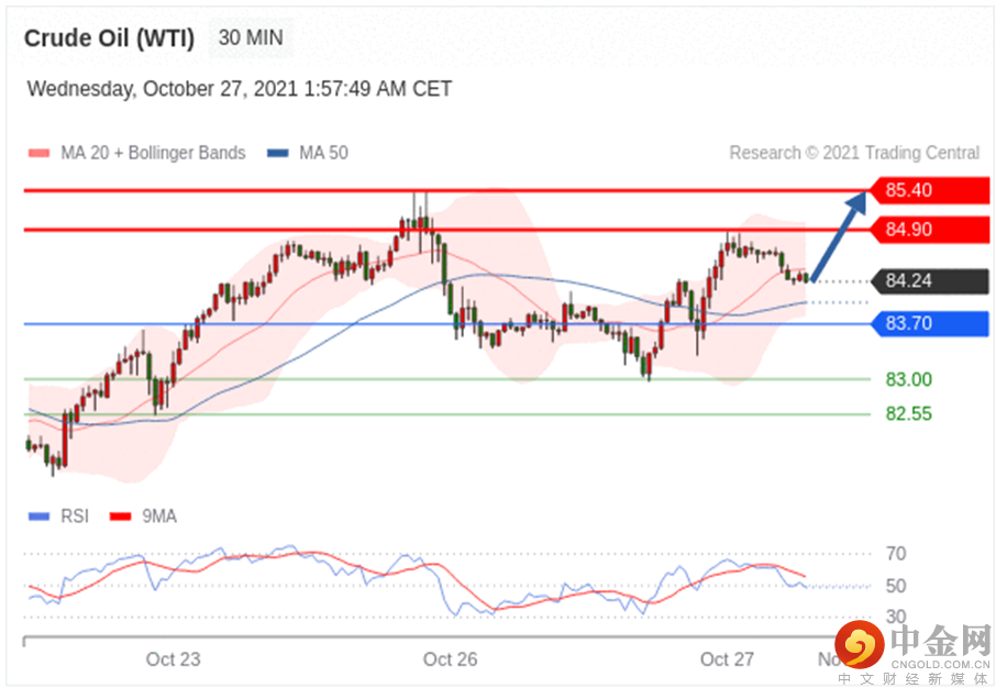 在 83.70 之上,看涨,目标价位为 84.90 ,然后为 85.40 。