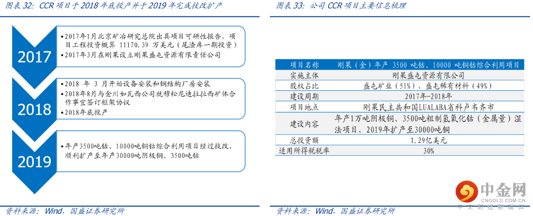 公司持股51%,建设首个刚果资源(CCR)铜钴冶炼项目,并于2018年顺利投产。凭借深入刚果(金)资源地优势,公司铜板块毛利率高达40%,经济效益显著。刚果资源(CCR)项目为年产3500吨钴、10000吨铜综合利用项目,后技改扩建至年产3500吨钴、30000吨铜。