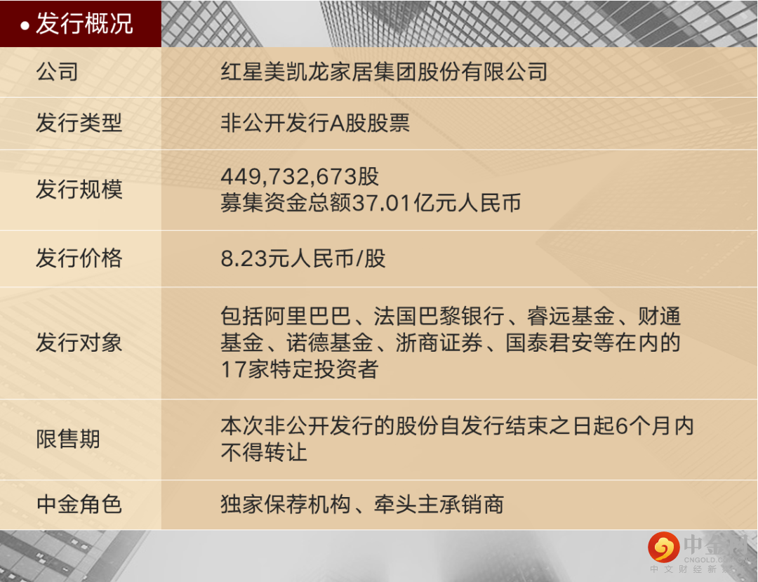 红星美凯龙家居集团股份有限公司(601828.SH,1528.HK;以下简称“美凯龙”、公司)已于近期完成37.01亿元非公开发行A股股票(以下简称“本次非公开发行”或“本项目”),中金公司在本项目中担任独家保荐机构和牵头主承销商。