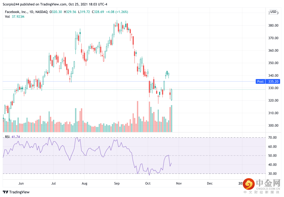 听起来苹果iOS系统的规则改变也影响到了Facebook的业务,6%的盈利指引预期差距是相当大的。也许在Facebook股价再一次下跌之前能够填补上方337美元处的缺口。我认为是一种不可能的走势。