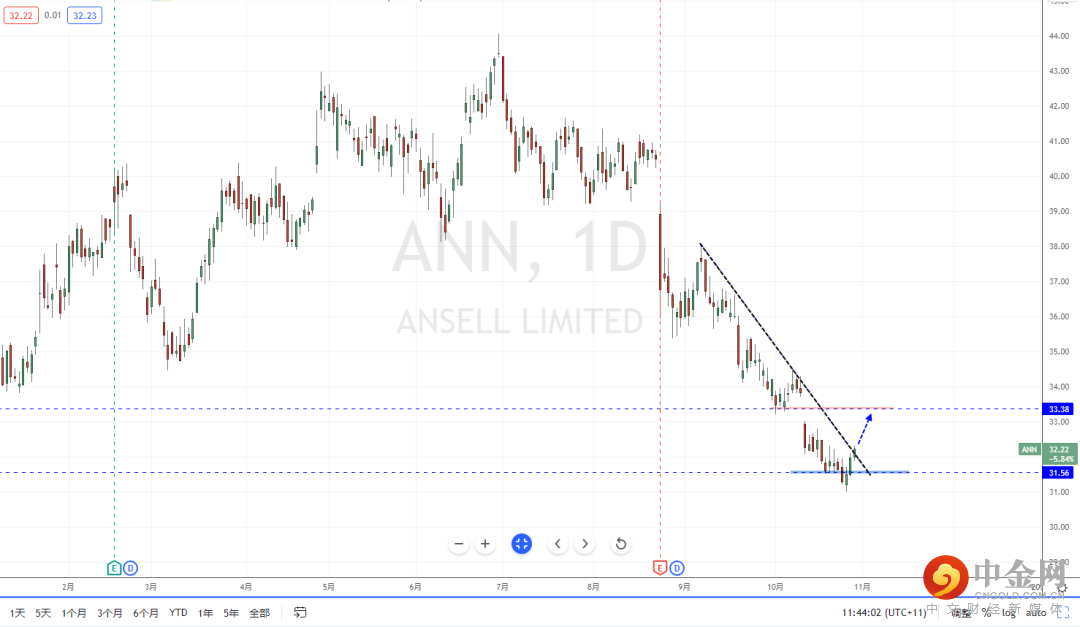 ANN:目前市场环境短期在减弱之后,出现明显的拐头下行迹象,并且整体ETF产业处于偏弱阶段。从ANN趋势的历经长期下跌之后止跌起稳,其价格也正测试上方下降趋势线的压制作用,下方水平支撑带在31.56附近。短期可适当关注价格调整后继续上行的多头机会,上方区间目标位置参考33.38一带。
