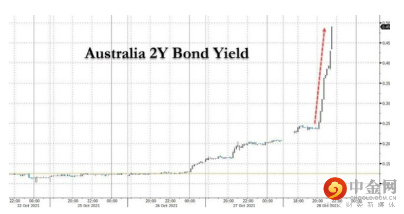 此举不仅会刺激人们对澳大利亚央行考虑提前加息的预期,而且会重新调整澳大利亚收益率曲线政策,这将很快为即将到来的收益率曲线倒挂做铺垫。而这反过来将导致欧洲和美国金融市场,最快在本周五感受到的冲击。本周五,美国2年期国债收益率升至50个基点,为0.52%。