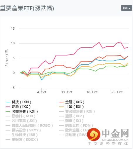 目前市场在小幅纠结之后再次上行,但市场力度不足。从美国股指期货小幅上涨,此前经济风向标卡特彼勒公布的财报表现良好,但仍需要关注公布的美国第三季度GDP数据的表现。目前整体ETF产业的表现中其趋势有拐上上行迹象。短期关注:科技(IXN)工业(EXI),必须消费(KXI),原物料(MXI),公用事业(JXI),医疗(IXJ),欧洲金融(EUFN),房地产(RWO),半导体(SOXX)产业中个股的多头机会。