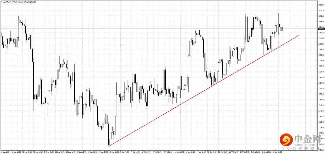 技术方面:日线黄金虽然出现倒锤线,但是整体基本面强劲 ,也勉强收阳,所以我们判断当前多有短线依然占优,此外从整个趋势来看,黄金也属于上涨趋势,趋势是当前技术最大的共识,所以建议投资者依然采取逢低买入的策略,上方压力1811-1850,下方支撑:1795-1792.