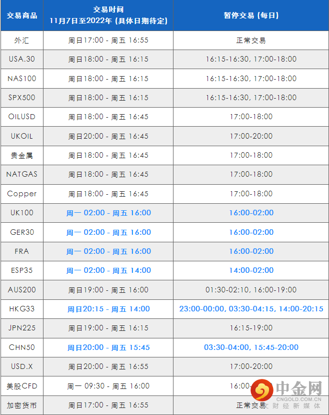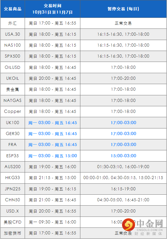 敬请留意,由于英国和美国的时制转换,部分商品的交易时间段将有所调整。