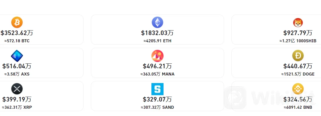 从币种方面看,比特币爆仓金额3523万美元超越以太坊重返首位,其中多头爆仓金额3340万美元,多头爆仓占比近57%。以太坊爆仓金额则降至1832万美元排名第二,此外SHIB爆仓仍然排名第三。
