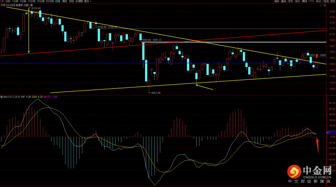 沪深300再次收阳处在下降趋势线上,但由于短期的走势太弱大概率不会出现快速再次向上,这个位置更多还需要点修复时间,可以注意把控下触碰上升趋势线附近的低吸点。