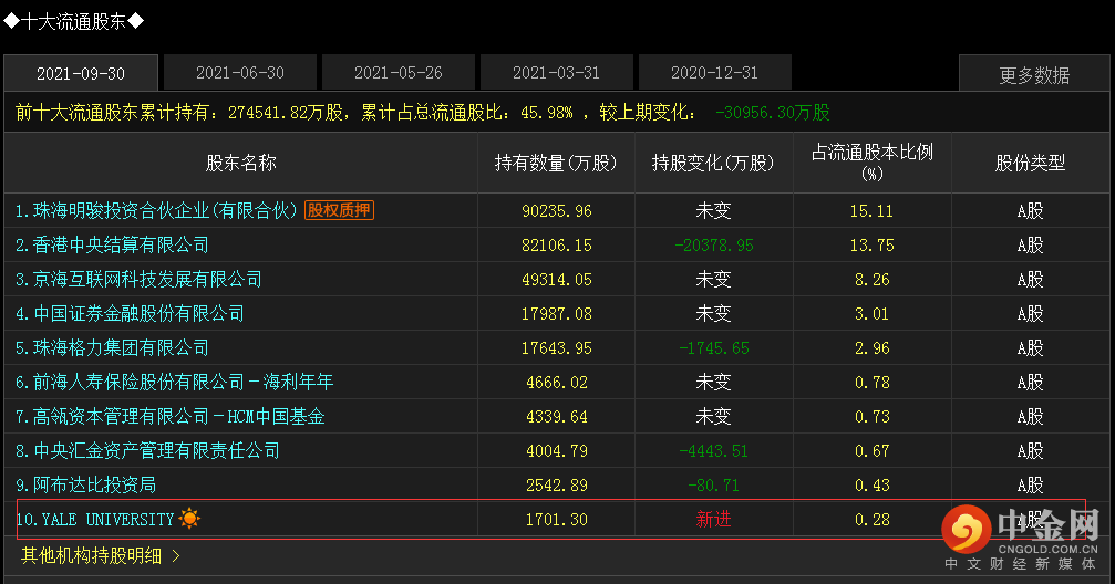 就连QFII资金耶鲁大学都逆势买入,以1701万股的持仓成为格力电器前十大流通股东。