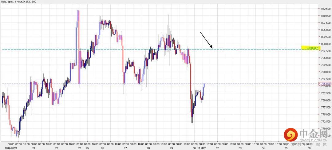 可以部署在$1,798美元左右建立淡仓盘,短线看淡金价一线至$1,766美元水平,止损在$1,808美元。