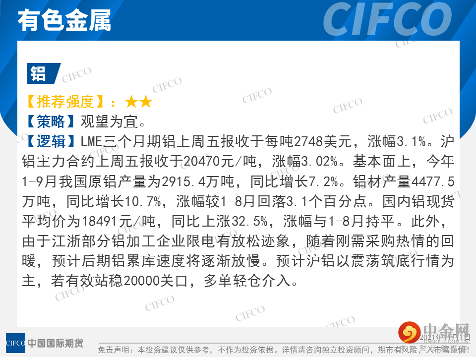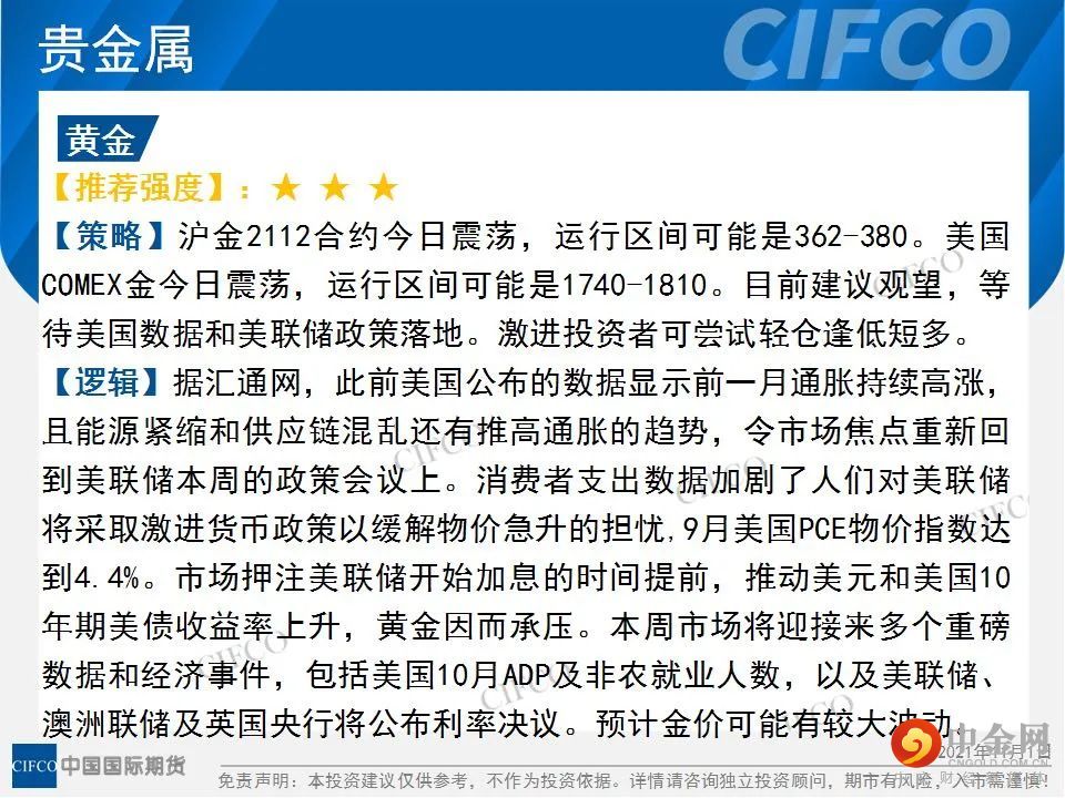 投研日报 | 投资行情星标推荐(2021-11-1)