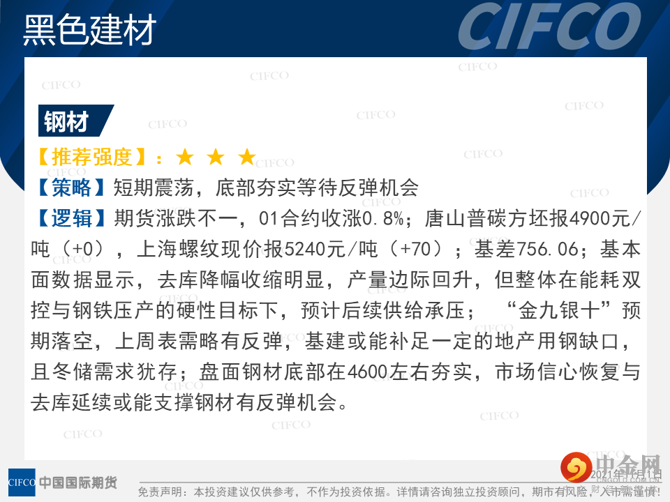 中期早知道 | 黑色能化顺势下跌 期指震荡反弹