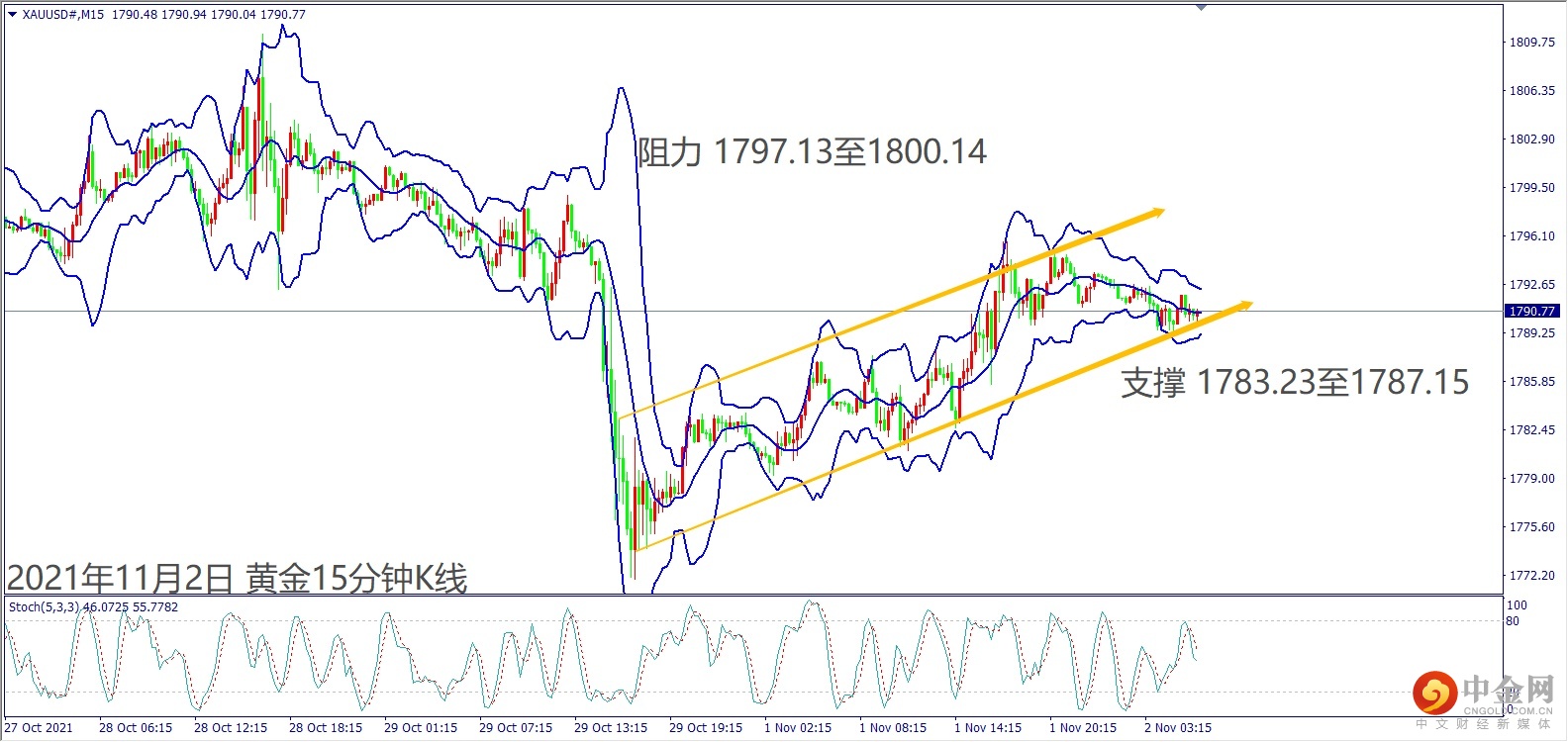 周一(1日)受到美元指数冲高回落影响,黄金从早上低点上涨约15美元。晚间触及上周五(29日)起跌阻力,出现卖压回落至1790美元附近整理。