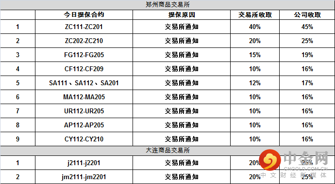 交易提示 | 期货交易保证金率一览(1102)