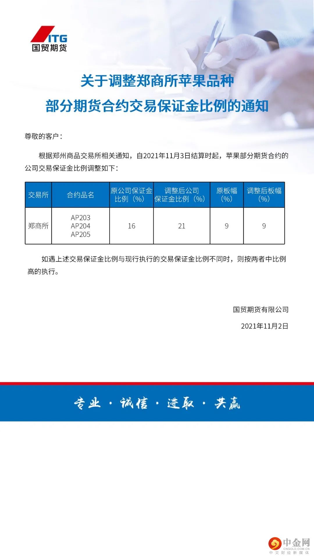 交易提示 | 关于调整郑商所苹果品种部分期货合约交易保证金比例的通知