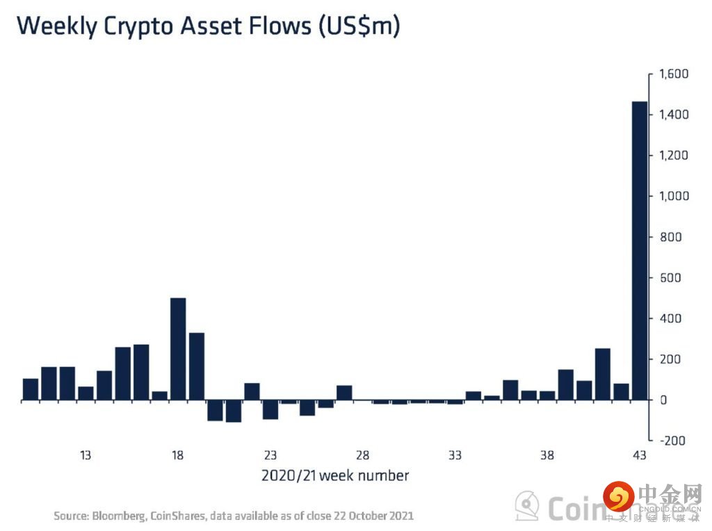 虽然传统投资者仍将投资重点放在股市,但在 BTC 开辟新的 ATH 之后,随着加密资产开始出现大量资金流入,对加密货币等替代资产的兴趣开始出现。在美国证券交易委员会批准 BTC ETF 后,前一周出现了最大的加密货币资金流入。流入量从通常的 1 亿美元增加了 10 倍以上,达到 14.7 亿美元。