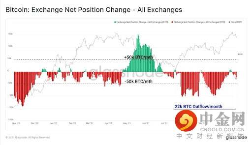 由于逢低买入,交易所继续看到 BTC 被买入和撤回,使 10 月份的 BTC 总流出量超过 22,000 BTC。