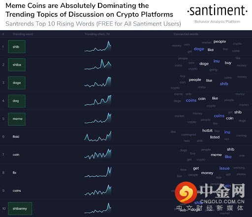 不让新狗得到所有关注,原来的狗模因令牌 DOGE 也活跃起来,一天之内从 0.24 美元飙升至 35 美元的高位。加密社交媒体整周都在充斥着这些狗代币。甚至 FLOKI 和 BabyDoge 等其他狗代币也在热潮中显着上涨。