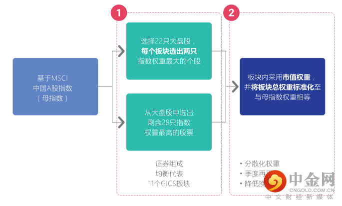 首先,从MSCI中国A股指数(母指数)的大盘股中,在11个GICS(全球行业分类标准)行业板块的每一个板块中选出指数权重最大