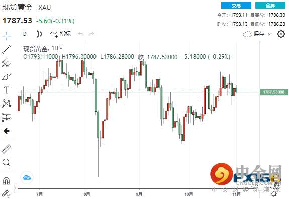 美市尾盘,现货黄金收报1787.53美元/盎司,下跌5.18美元或0.29%,盘中最高触及1796.30美元,最低触及1786.28美元。
