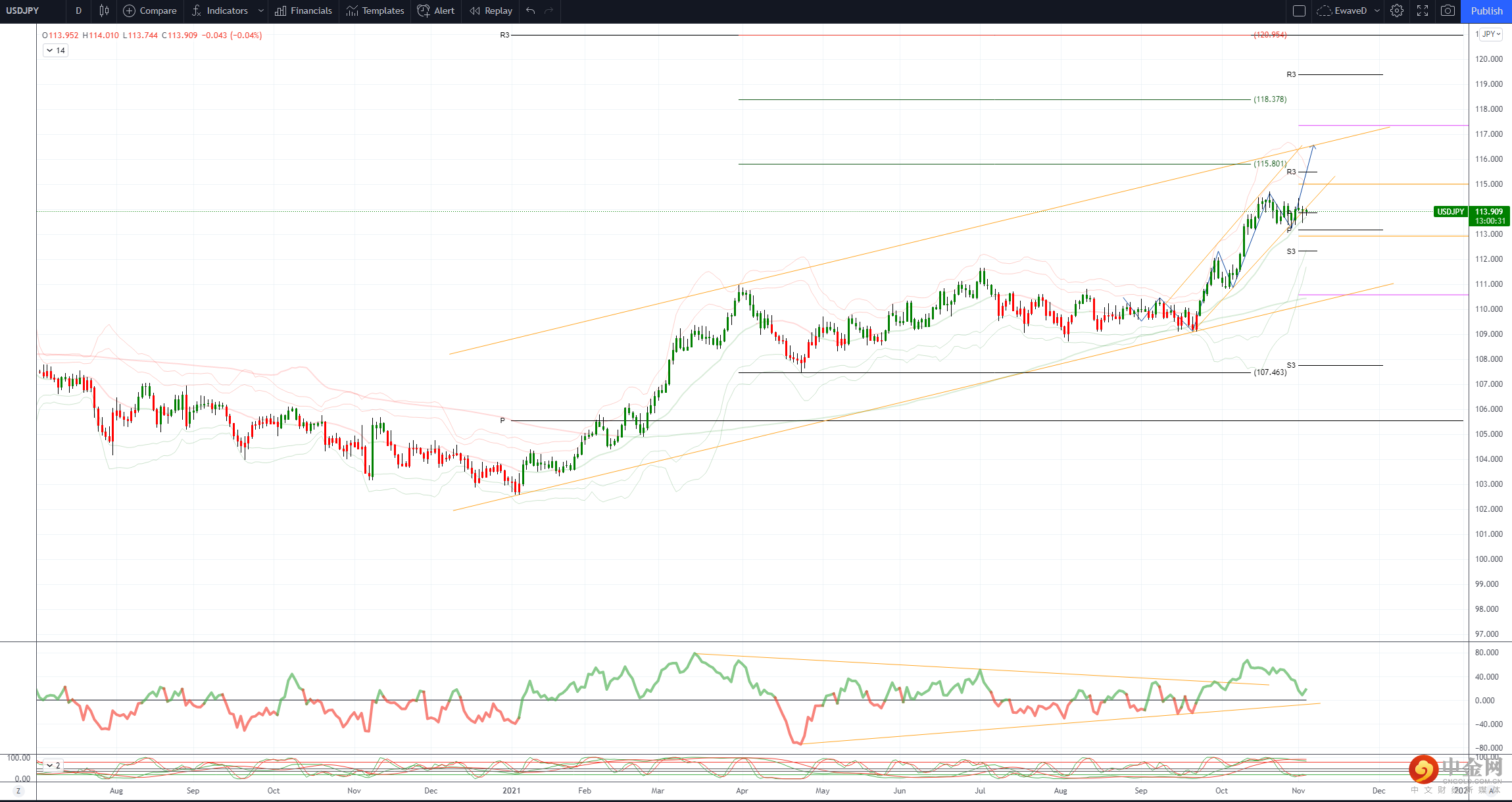 113.26 10 月下旬底部和 114.69 10 月高点是范围参数