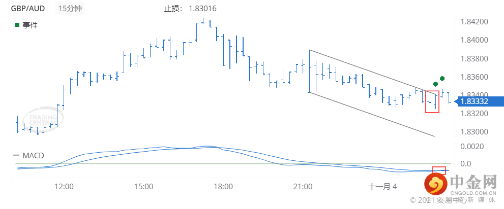 较快的移动平均线于2021年 11月 04日(GMT时间01:00)向上穿越较慢的移动平均线,释放出新的上涨趋势已确立的信号。