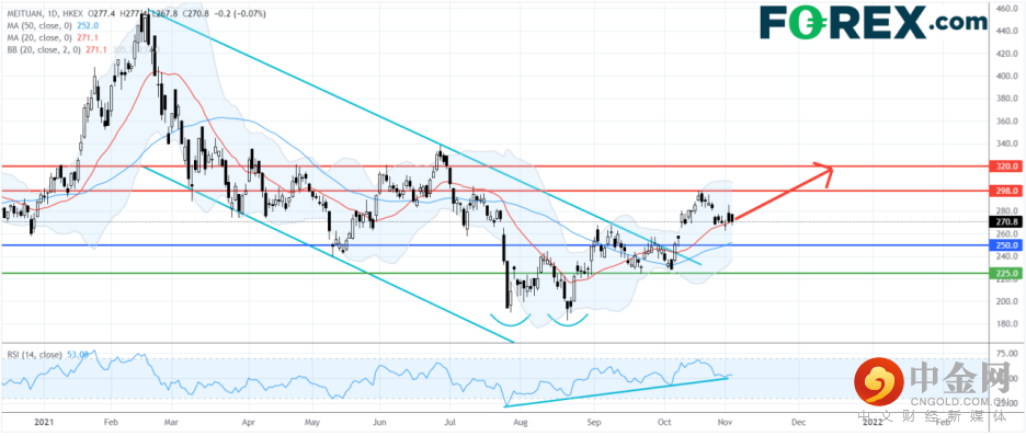 看涨的投资者可将250港元视为主要支持(止损)位,上行目标在298港元及320港元。
