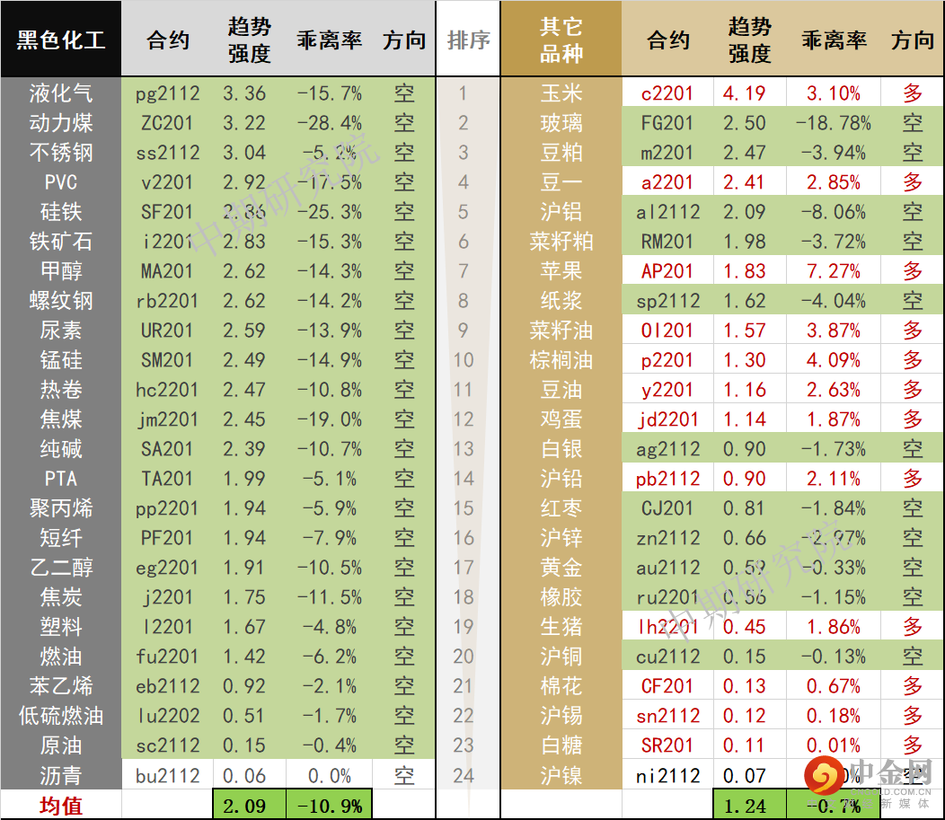 中期商品趋势榜 | 黑色震荡加剧,玉米冲上多头榜首(1103)