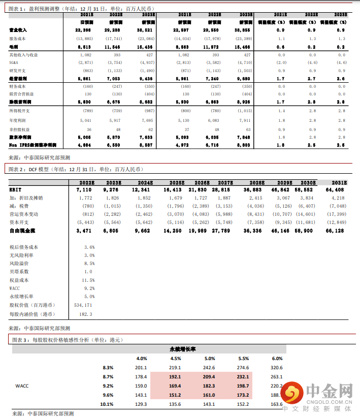 我们将 2021-23E 收入预测均上调 0.9%,Non-IFRS 经调整净利润分别上调 1.8%、2.5%、2.5%。我们重申“增持”评级,目标价从 181.8 港元轻微上调至 182.3 港元。风险提示:(一)新冠反复导致生产受影响;(二)客户营受影响被迫减少研发支出;(三)项目进展中出现问题可能导致中断