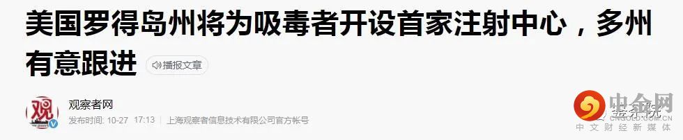 10月28日,美国罗德岛州政府做出决定,将在当地开设供“瘾君子”吸食毒品的“公共注射中心”。