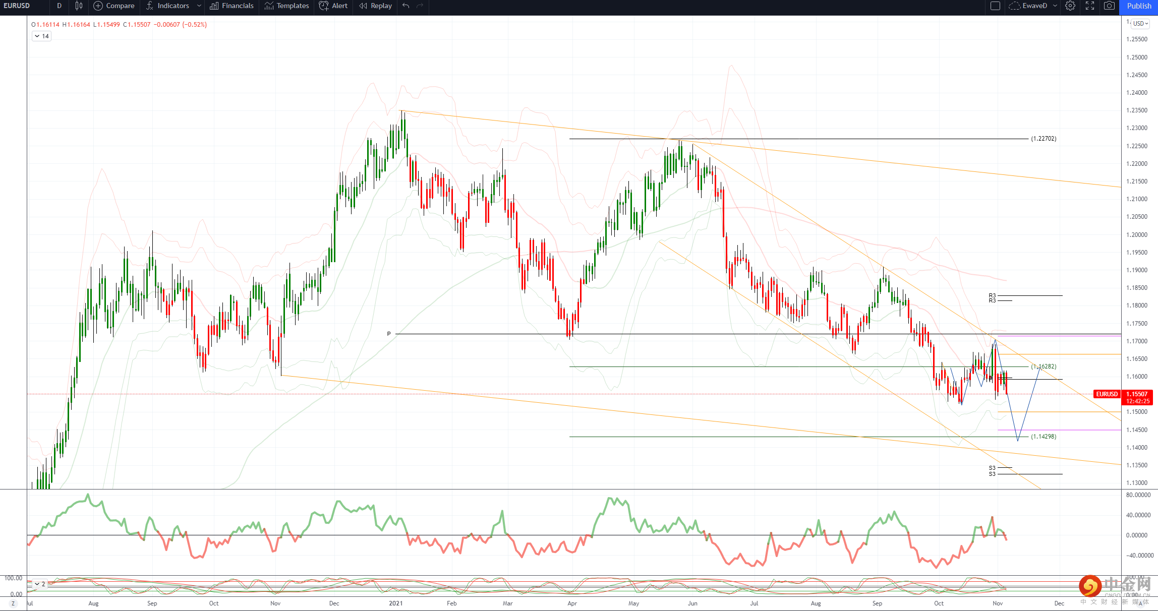 1.1670 斐波那契:1.1909 至 1.1522(9 月至 10 月)下跌的 38.2% 回撤位