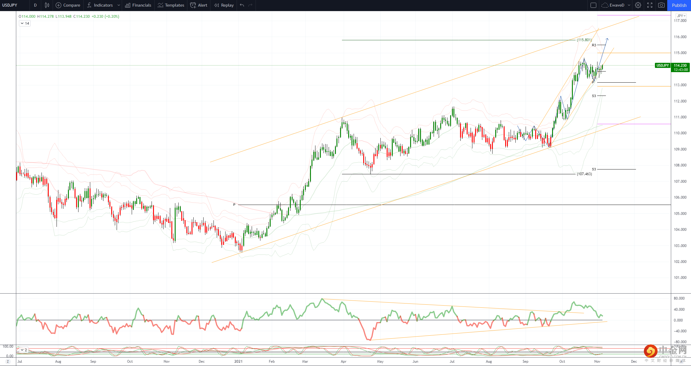 买盘关注低点 114.00,更接近 113.50,10 月 28 日低点 113.26