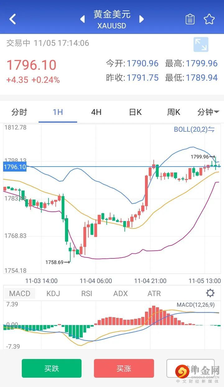 周四现货黄金于欧盘开启上涨模式,一度逼近1800关口,较日低上涨了25美元,最终收涨1.25%,录得三周来最大单日涨幅。本交易日,现货黄金基本持稳。从1小时走势图来看,红色动能柱逐渐缩短至消失,多头动能减弱。美国非农就业报告今晚来袭,非农前美元指数回顾94.3多头走势,而贵金属与美债收益率也尝试温和反弹,现货钯金行情也跳高。今晚美国非农将结束繁忙一周,随着美联储宣布决议后尘埃落定,全球主要央行之前的政策背离越发明显。