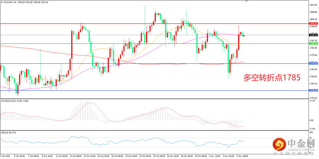 日前,美联储及英国央行两大央行都在加息上保持了耐心。美联储周三暗示,将对加息保持耐心,并将于本月开始削减其大规模债券购买计划。而原本被认为会加息15基点的英国央行维持利率不变。投资者开始意识到央行还在观望,货币政策快速收紧的风险有所减小,这样的预期转变利好金价,晚间市场将迎来最重磅的非农就业数据,如果非农数据表现不及预期,金价有望再度拉升,收复1800美元失地。