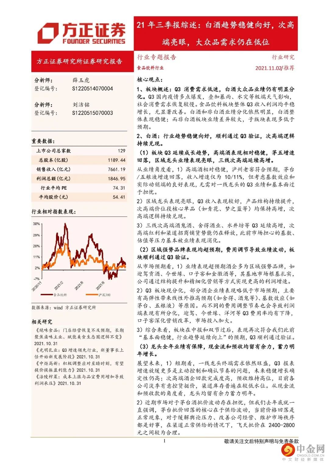 本文来自所于2021年11月3日发布的报告《食品饮料21年三季报综述:白酒趋势稳健向好,次高端亮眼,大众品需求仍在低位》,欲了解具体内容,请阅读报告原文。