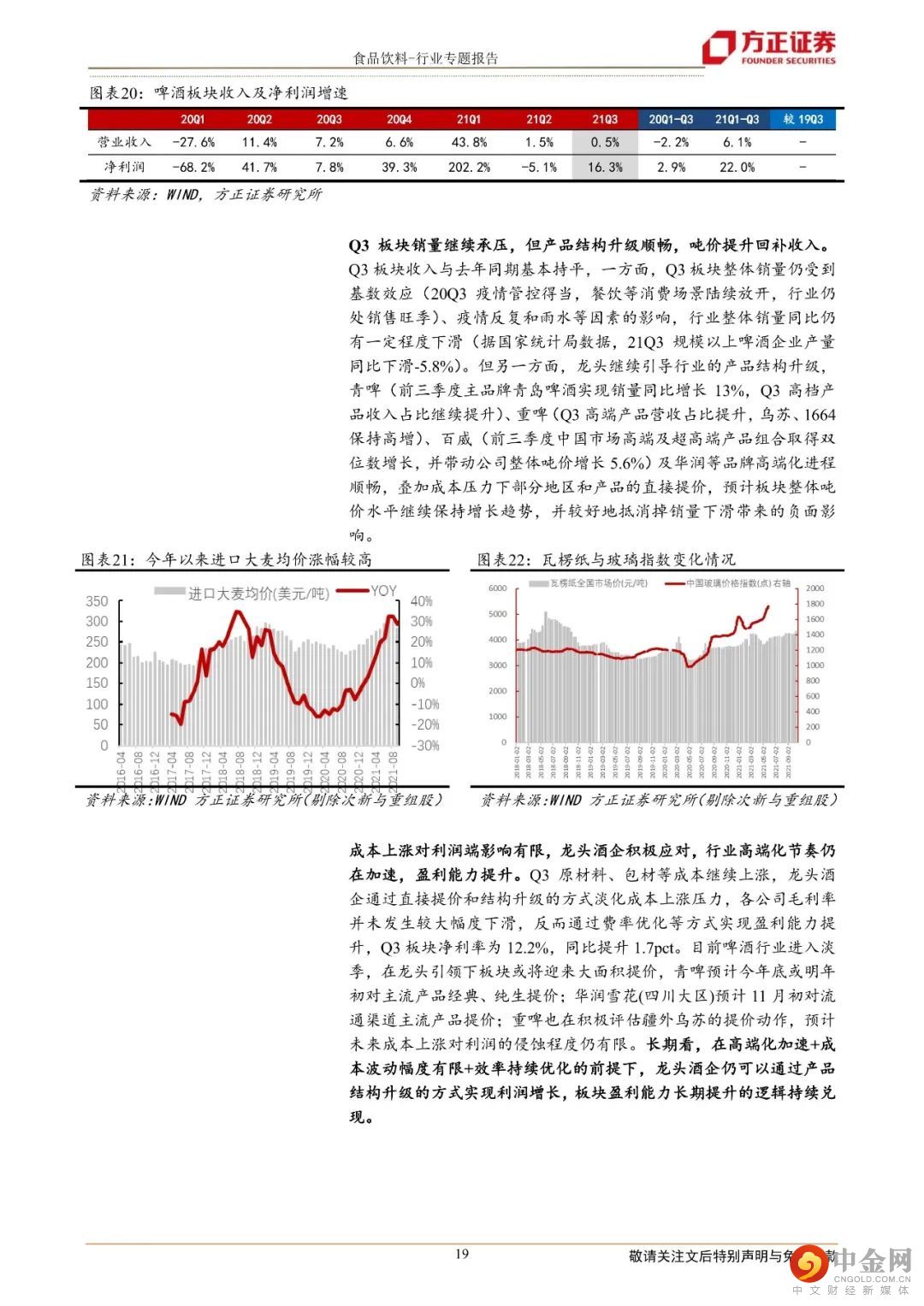 3、啤酒:成本上涨压力可控,盈利能力持续改善。当前行业高端化节奏仍在加速,未来在高端化加速+成本波动幅度有限+效率持续优化的前提下,龙头酒企仍可以通过产品结构升级的方式实现利润增长,板块盈利能力长期提升的逻辑将持续兑现。