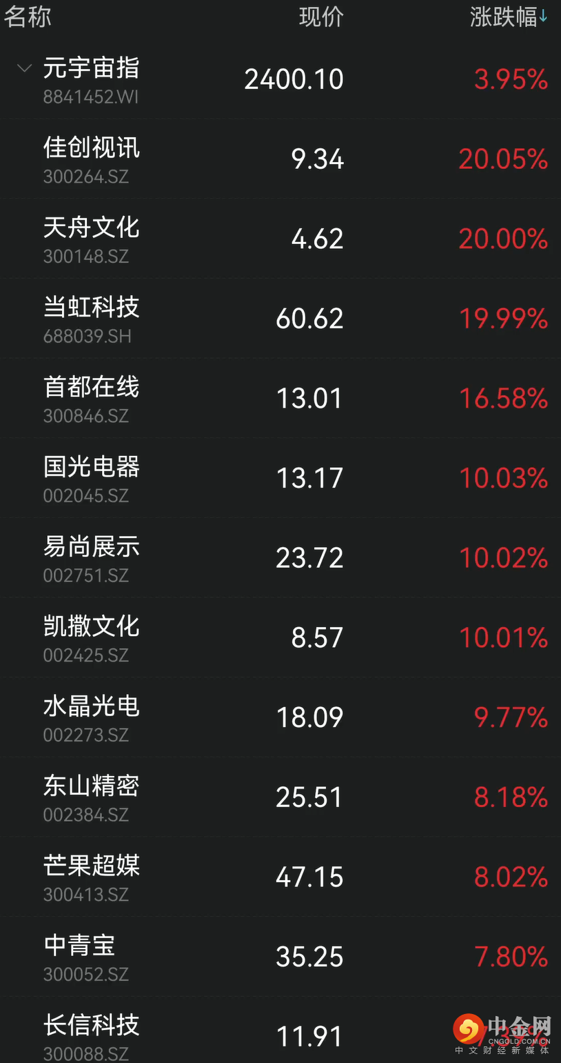 今天,A股元宇宙板块强势依旧,指数早盘一路走高,收涨近4%。多股强势涨停!
