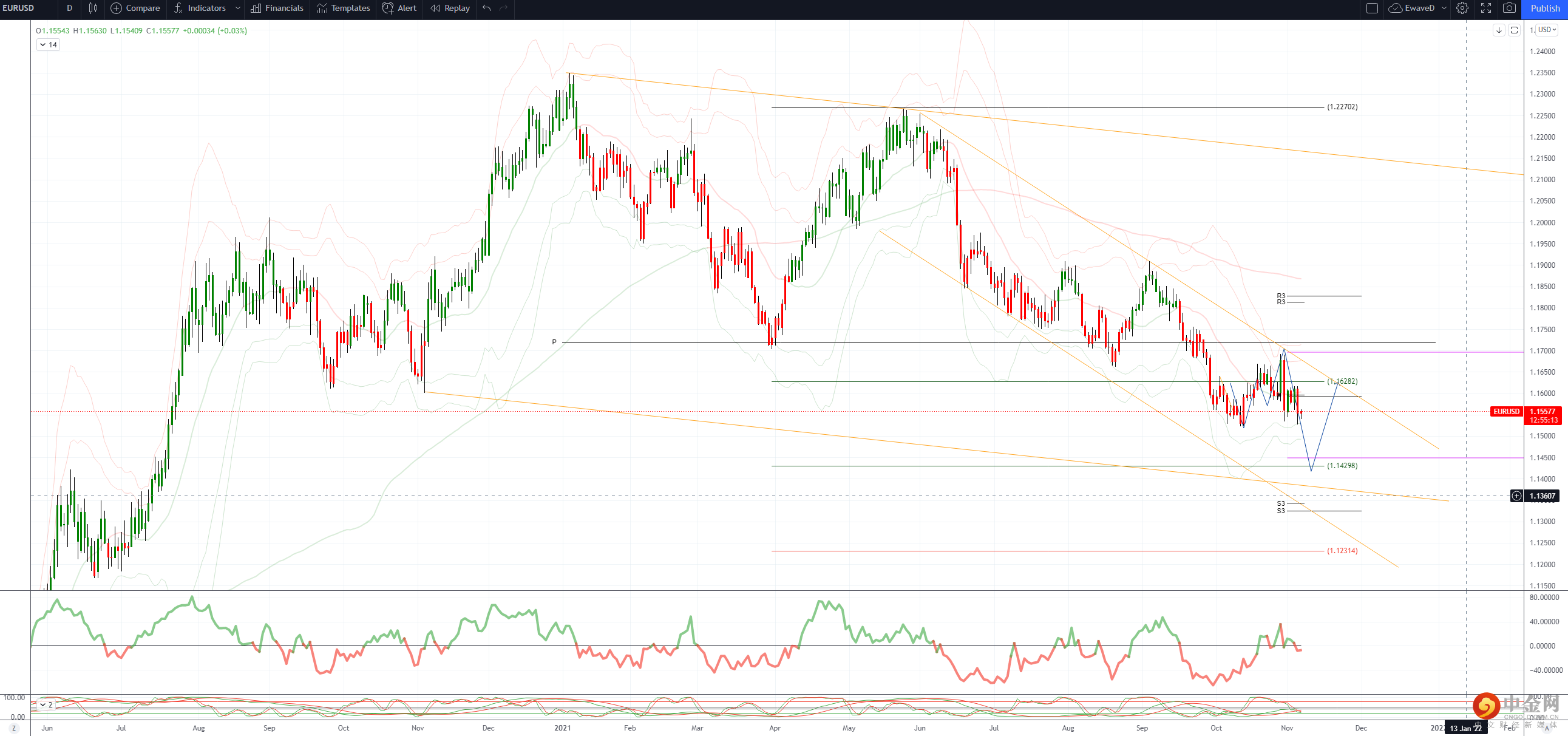 阻力位于 10 天和 21 天均线汇合处 1.1595