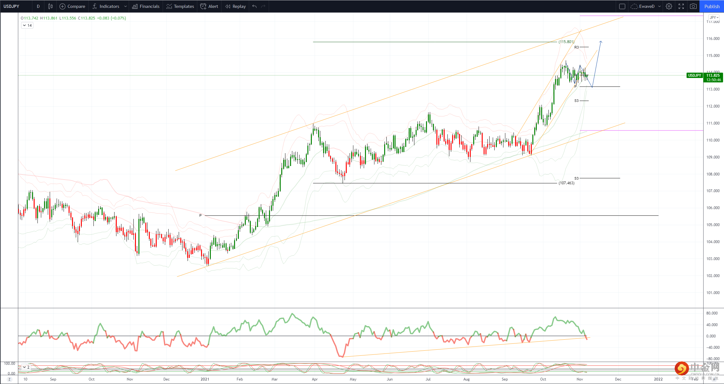 昨日低点113.51,周二低点113.46,10月28日低点113.26