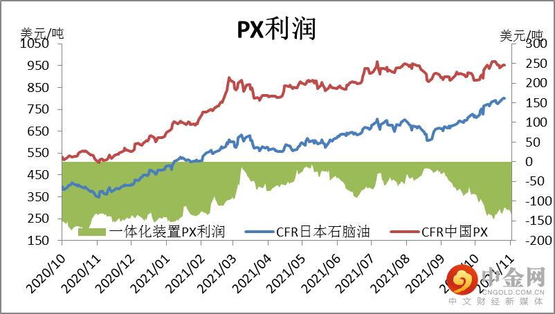 PX供应端来看,10 月 25 日荣盛发公告,商务部同意安排浙江石油化工有限公司炼化二期项目 2021年原油非国营贸易进口允许量1200万吨,11月后 PX有提升负荷预期。