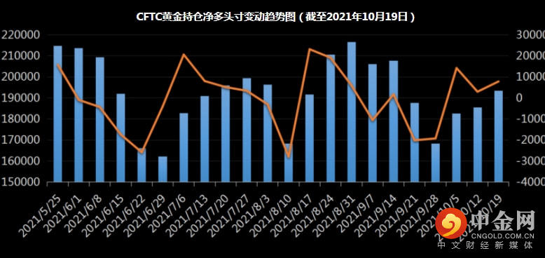 CFTC商品类非商业持仓报告另外,美国商品期货交易委员会CFTC商品类非商业持仓报告显示,机构投机类持仓自2021年1月5日当周的279318减少至3月30日当周的167528之后,7个月以来,基本在16-22万之间上下波动。9月28日当周以来,自168399手净多头持续增加三周,至截至10月26日当周的214560手,接近波动区间顶端。预计接下来又该向下波动。无论向上或向下大幅波动,或将打破3月底以来金价区间震荡的格局。