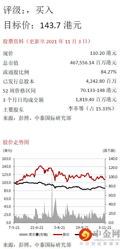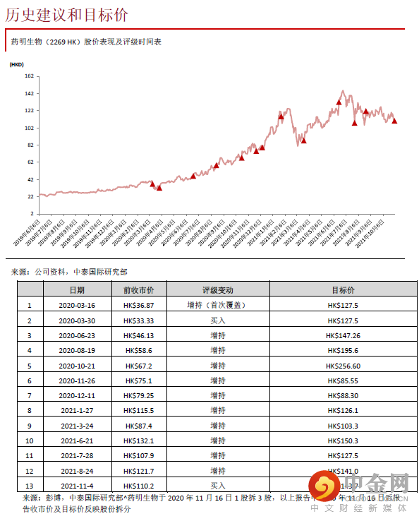 我们将公司2021-22E收入预测分别上调5.9%、0.4%,反映核心业务盈利的经调整净利润上调4.9%与0.1%。考虑到新冠疫情的舒缓,我们略微调整2023年新冠业务的收入预测,并将2023年的收入与经调整核心净利润预测分别轻微下调0.9%、1.1%,但由于现金流的好转,我们将目标价从141.0港元上调至143.7港元,评级从“增持”上调至“买入”。