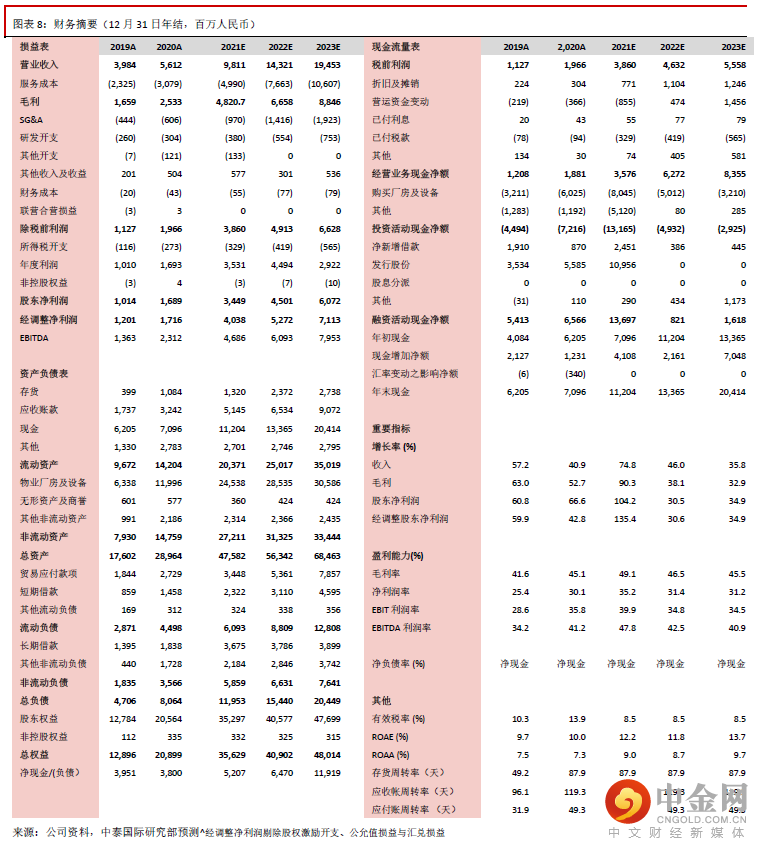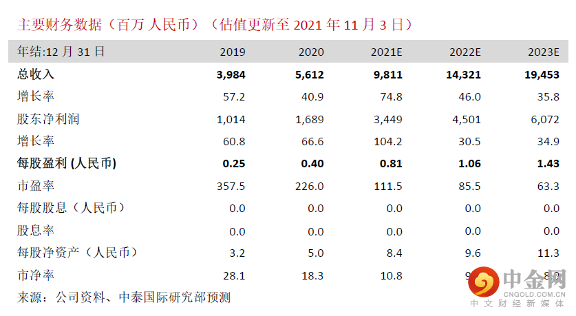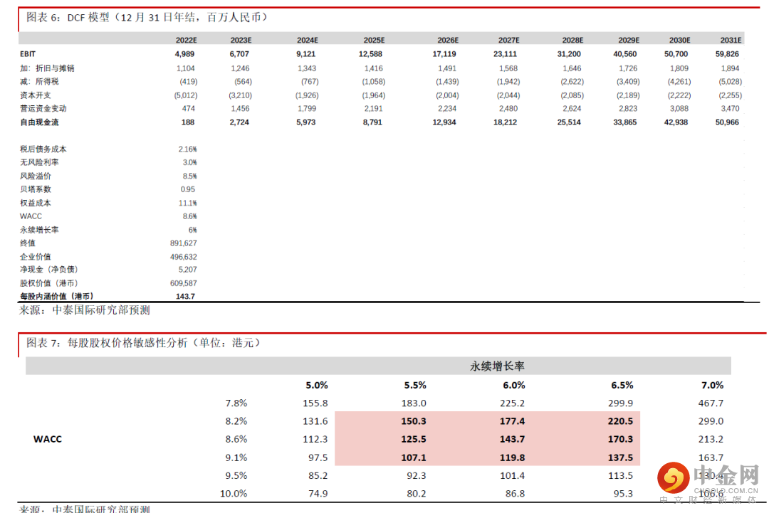 考虑到公司处于快速扩张期,我们原来对2022年资本支出作了较高预期,但是管理层表示2022年的资本支出将从2021年的约80亿元缩减至约50亿元,管理层首次指引自由现金流有望于2022年转正,表明经营情况理想。