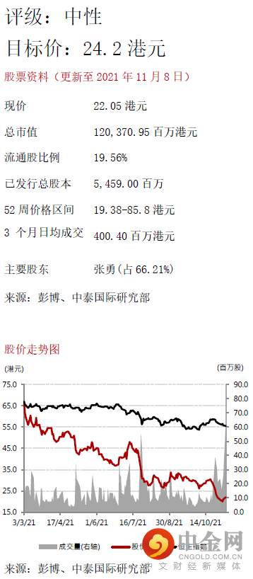下调目标价至24.2港元,下调至“中性”评级