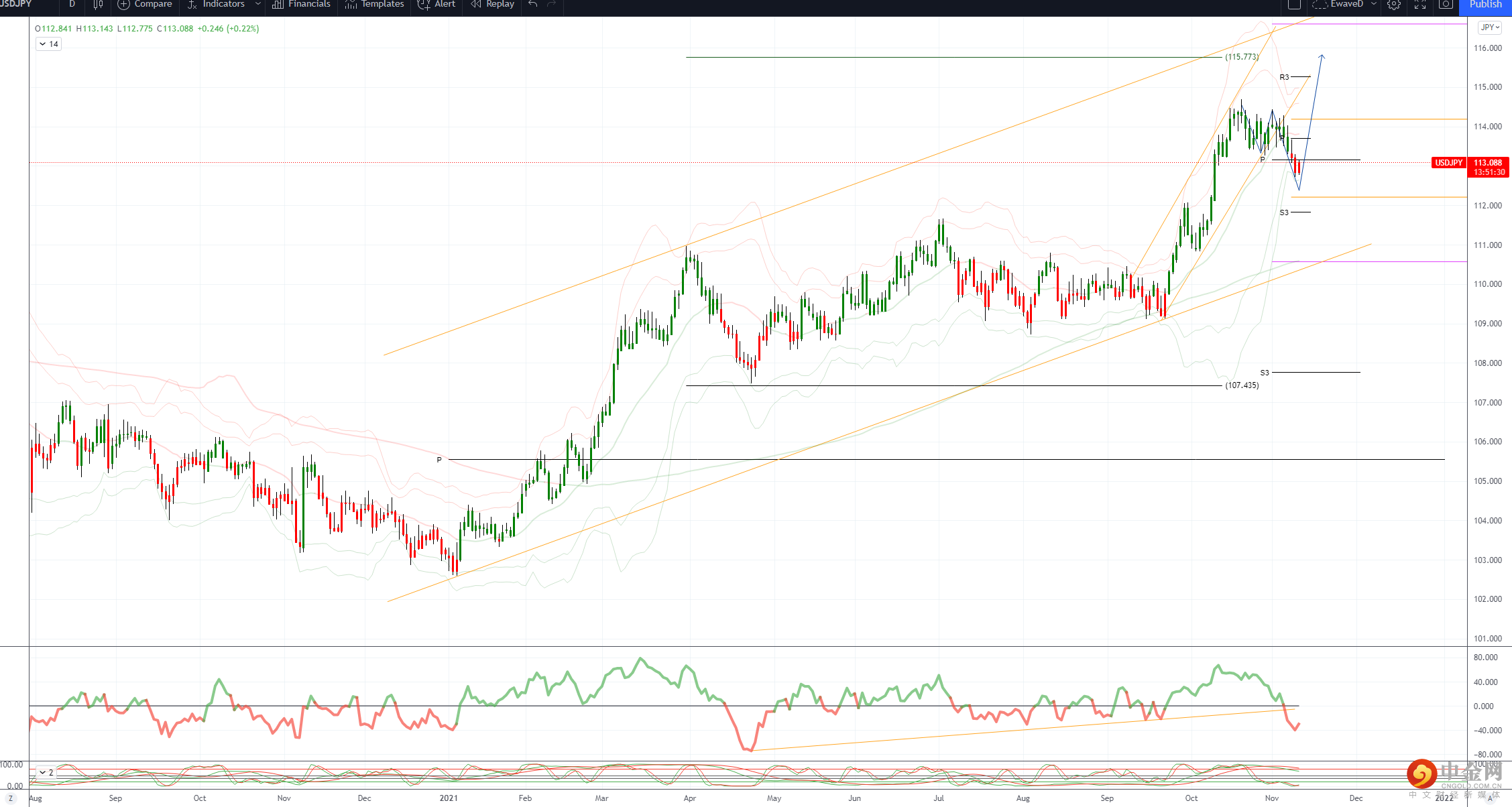 112.55 斐波那契 109.11-114.69 9/15-10/20 的 38.2% 回撤位