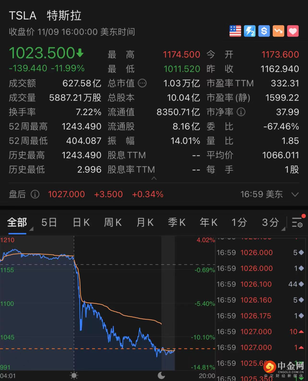 特斯拉暴跌近12%