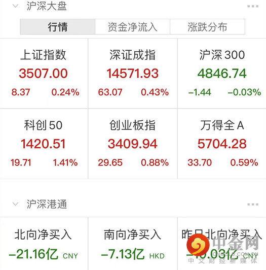 截至收盘,沪指涨0.24%,报3507.00点。深证成指涨0.43%,报14571.93点。创业板指涨0.88%,报3409.94点。