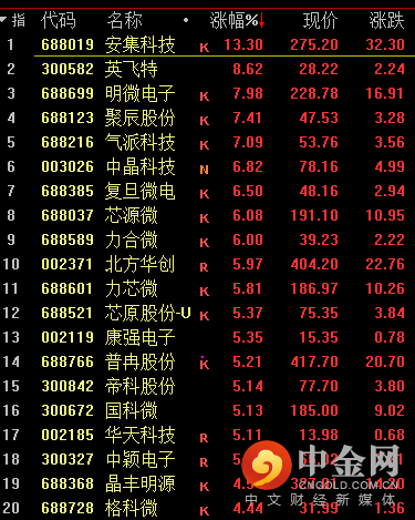 半导体板块午后拉升,景嘉微20cm涨停,安集科技涨逾13%,北方华创、中芯国际、芯原股份等冲高。此轮反弹从10月29日开始,在国家大基金接连参与行业公司定增的消息刺激下,历经8个交易日,整体涨幅已超12%