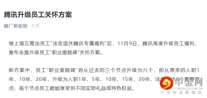 其中,“终身健康保障”是指在原五周年长期健康保障基础上,腾讯将另外再赠予符合15年入职年限的员工一份终身健康保障的保险。