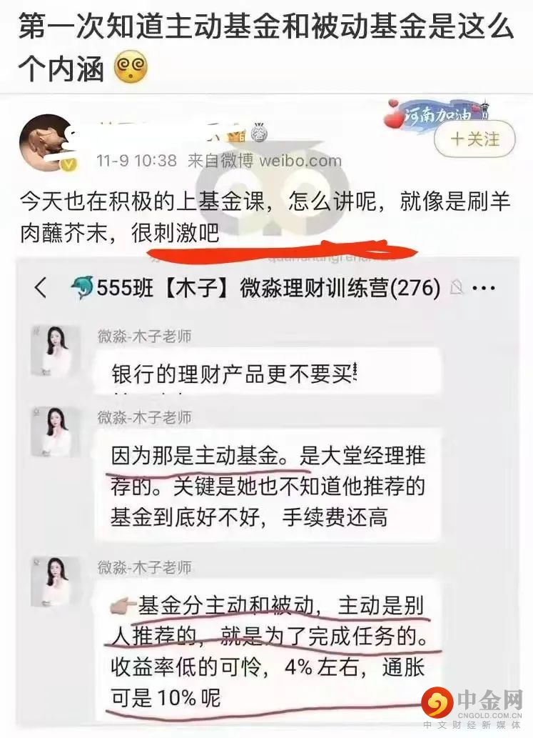 财经大V楚团长在微博晒出了某商学院的老师在群里这么教人买基金。