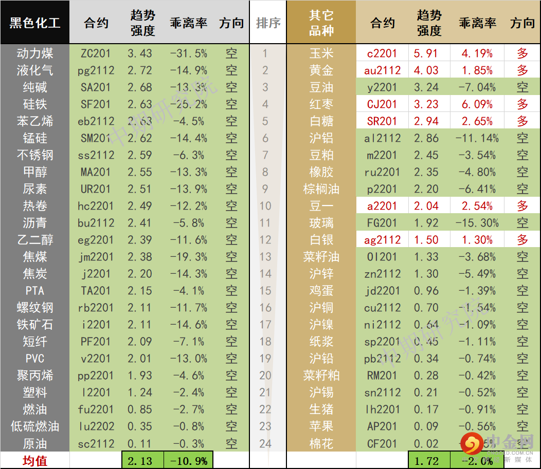 中期商品趋势榜 | 多数品种震荡,谨慎为上(1109)